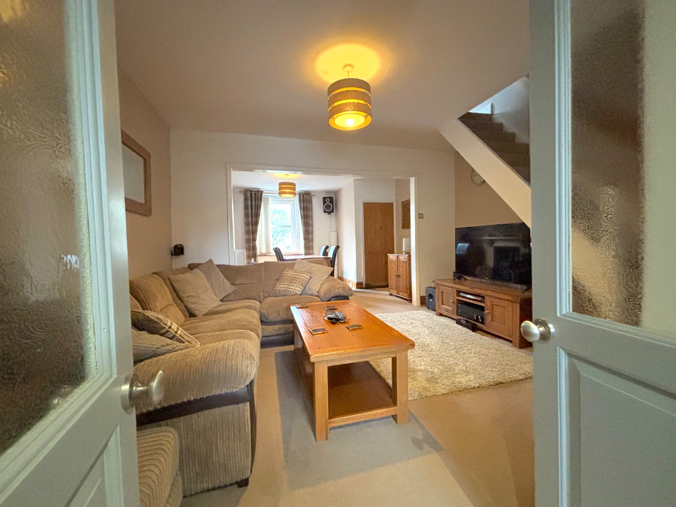 Arranged over two floors, the accommodation is both versatile and welcoming. An entrance hall leads into a bright and spacious open-plan living and dining area, complete with a character fireplace and log burner — creating a warm and inviting space ideal for both relaxing and entertaining. The property further benefits from a stylish, contemporary kitchen/breakfast room featuring an integrated oven and hob, along with a breakfast bar for casual dining. A well-appointed family bathroom completes the ground floor. Upstairs, there are two generously sized double bedrooms, both offering comfortable and flexible accommodation suited to a range of buyers.