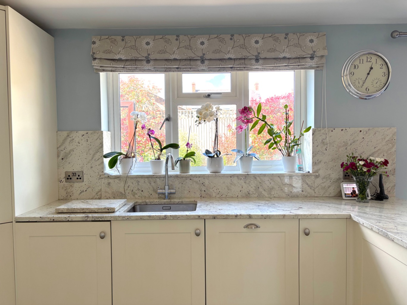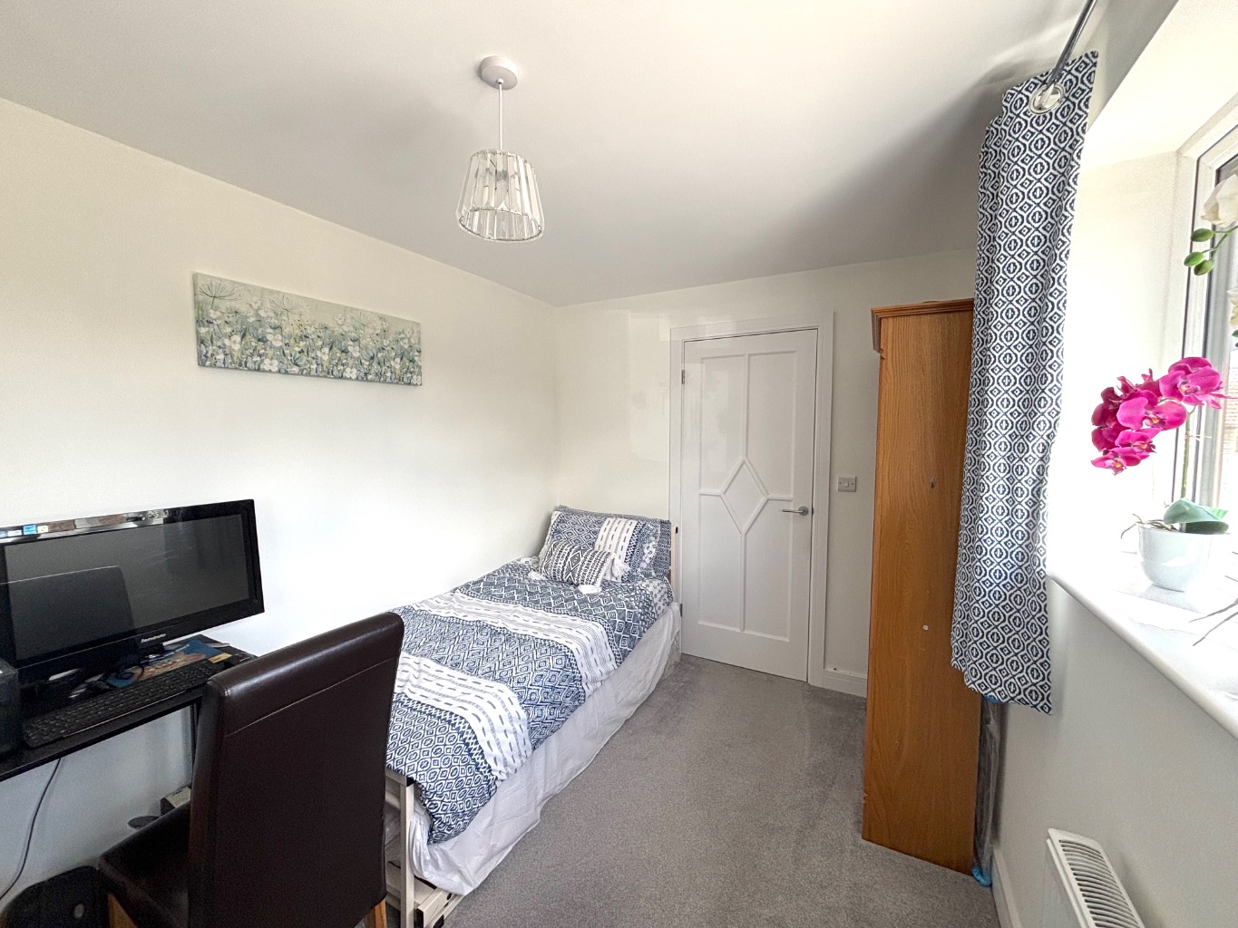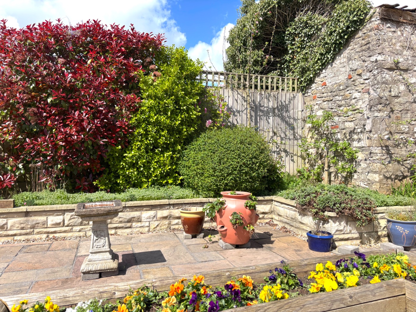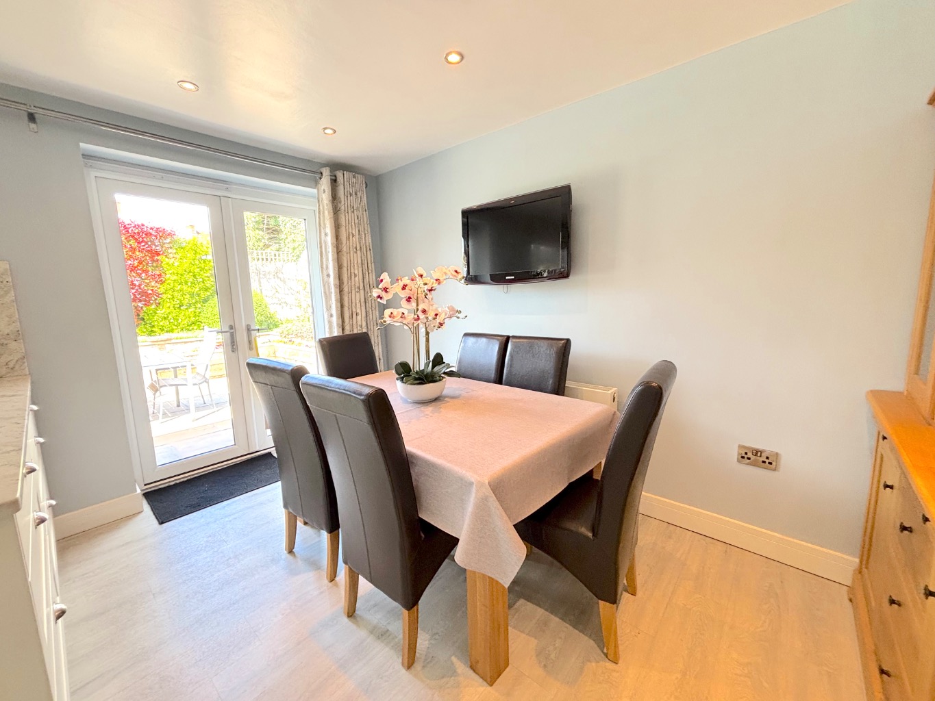 The sense of space continues externally. To the front, there is driveway parking alongside a single garage with power and lighting. Double width gates provide side access and additional parking when needed. The front garden is bright and inviting, with well stocked flower beds and planters creating an attractive approach.