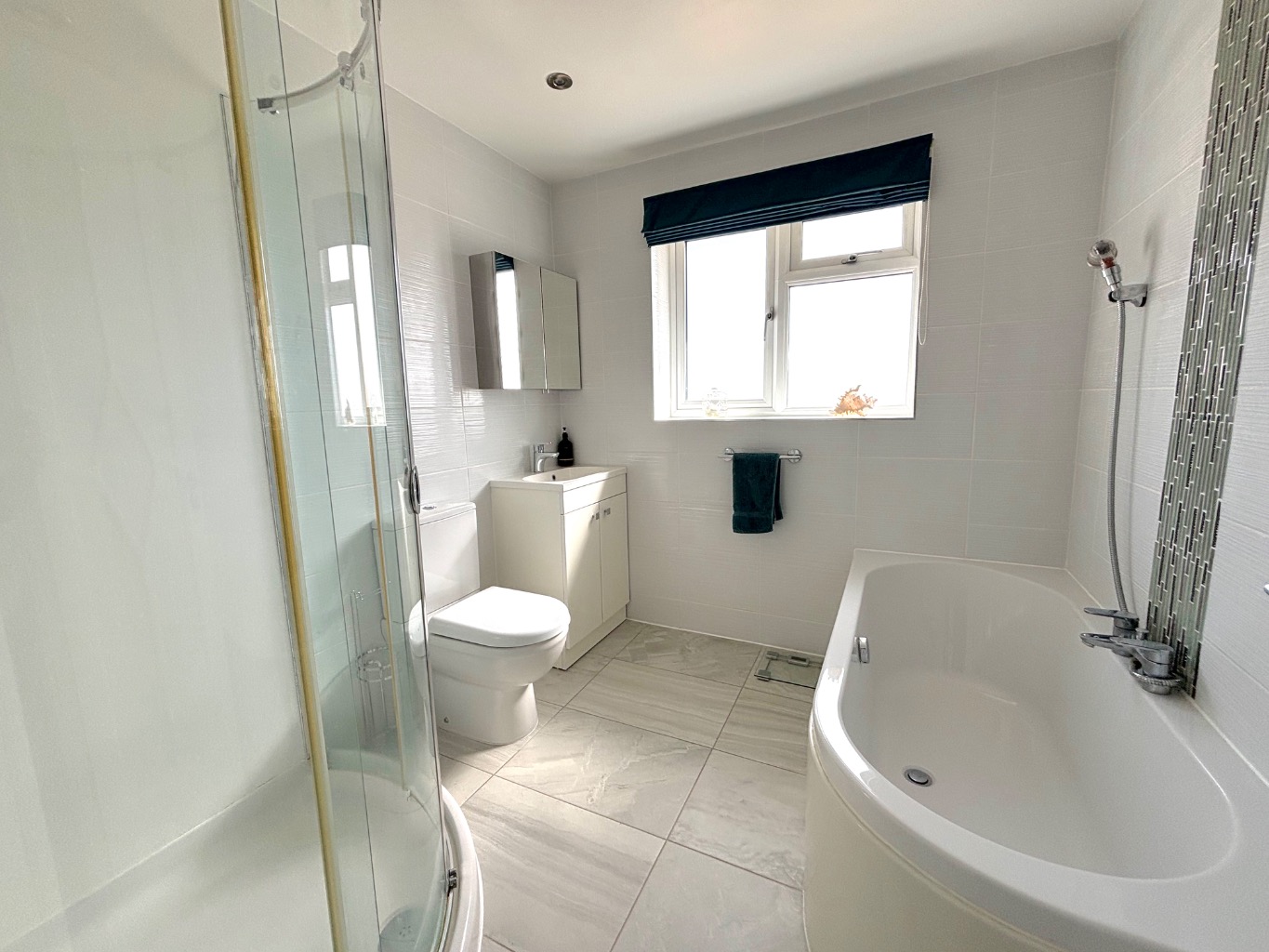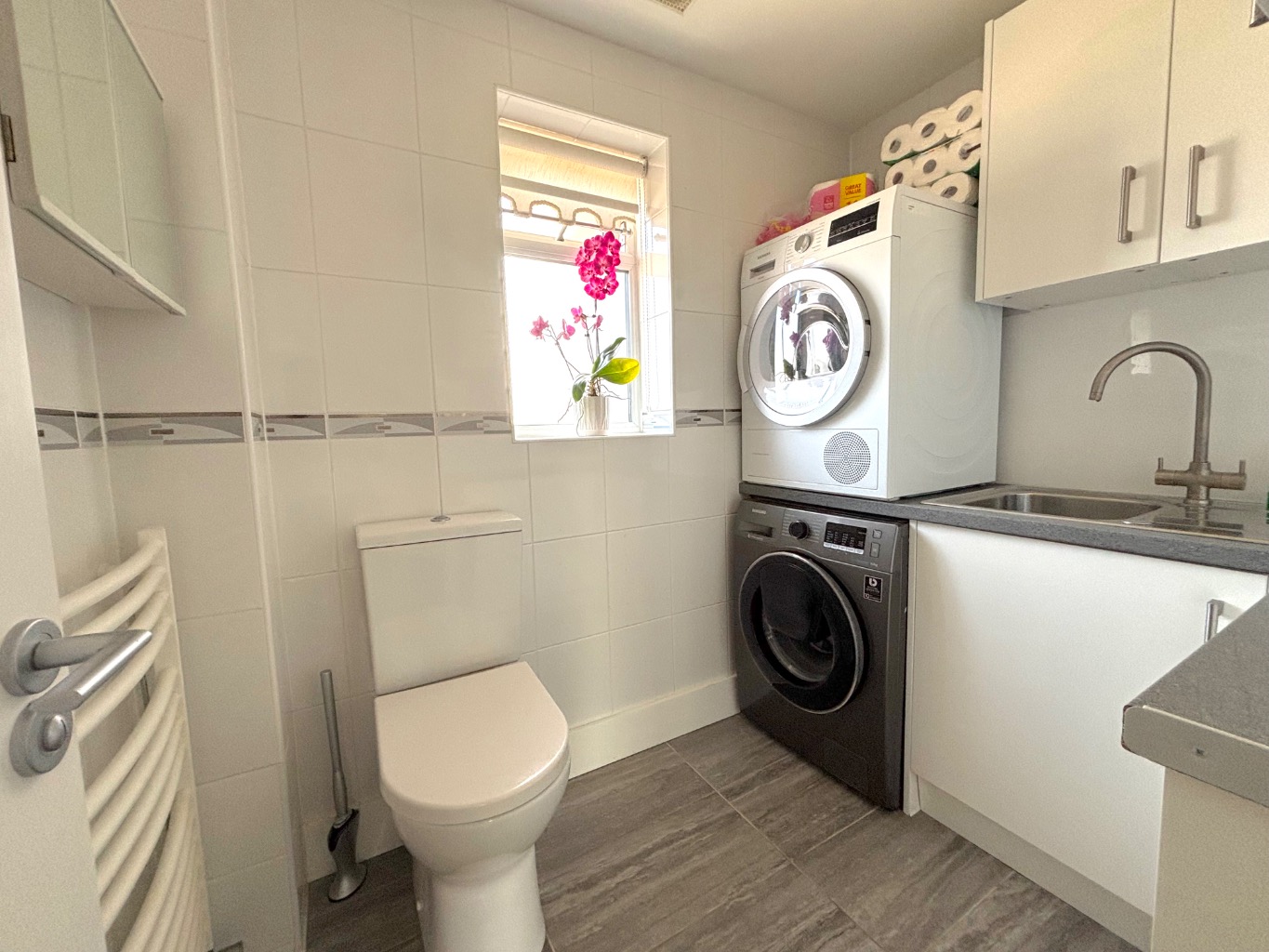There are three generously sized bedrooms, all benefiting from built in wardrobes, and these are served by a luxurious main bathroom fitted with both a bath and a separate shower cubicle. A separate utility room adds further convenience.