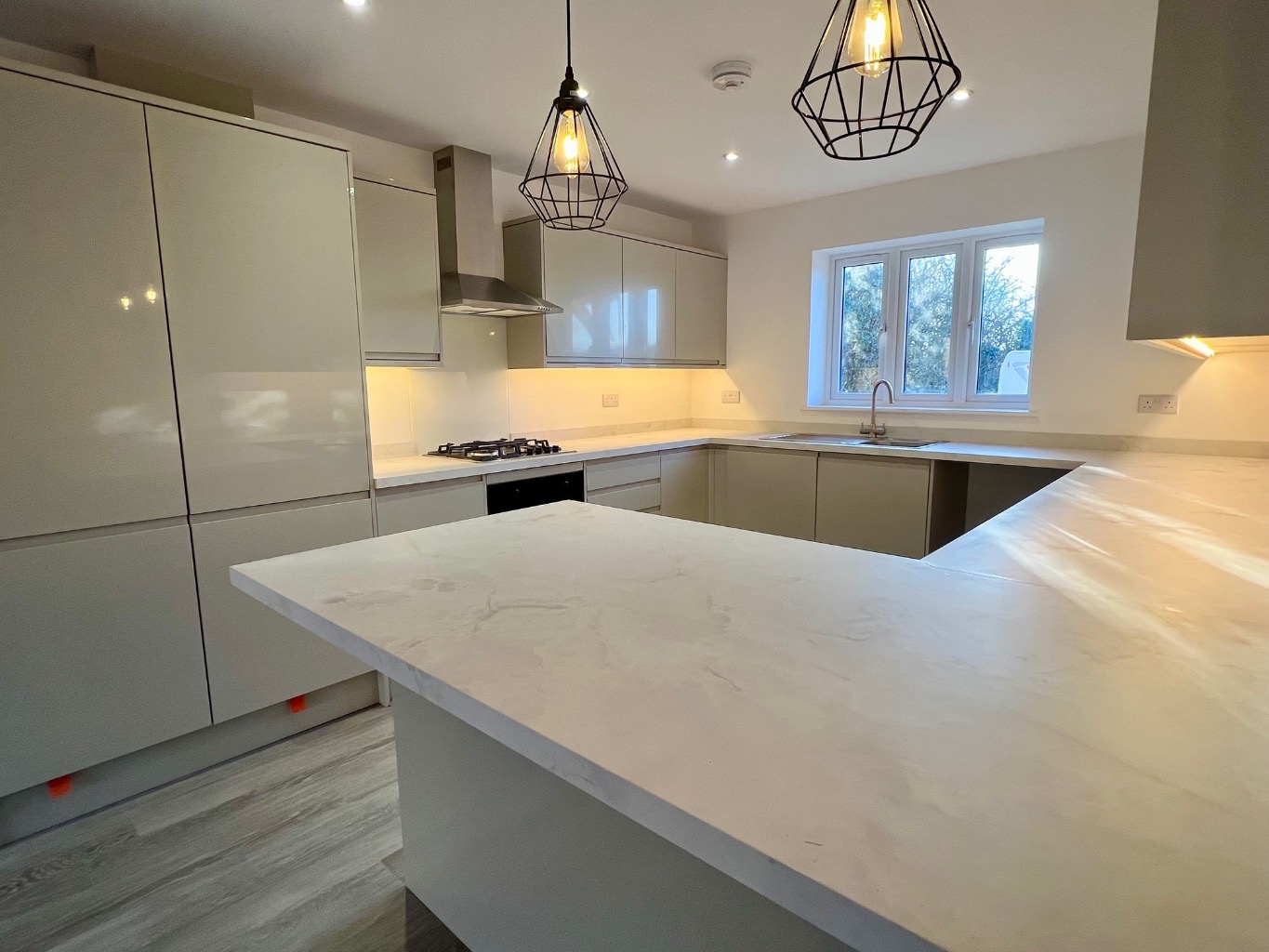 The heart of this home is undoubtedly the modern kitchen, equipped with brand new, integrated dishwasher and fridge/freezer, ensuring a seamless move-in experience. The high-specification finish extends to every corner, from the sleek countertops to the ample storage solutions, making it a joy for any aspiring chef. A convenient downstairs cloakroom or storage space further enhances the ground floor's functionality, and the addition of a downstairs WC adds extra convenience.