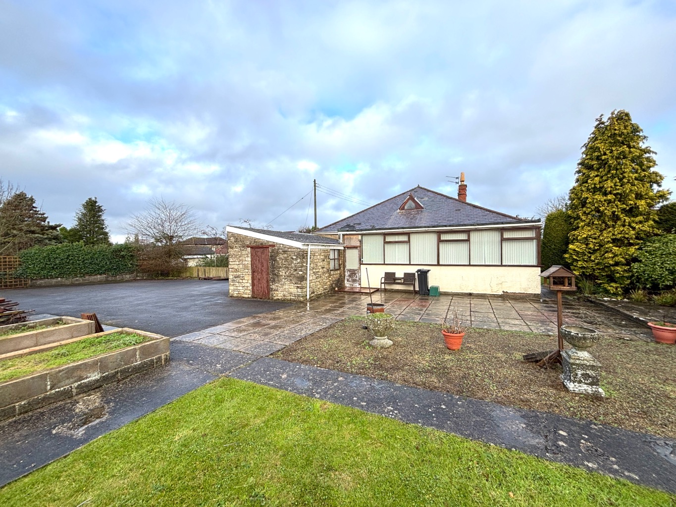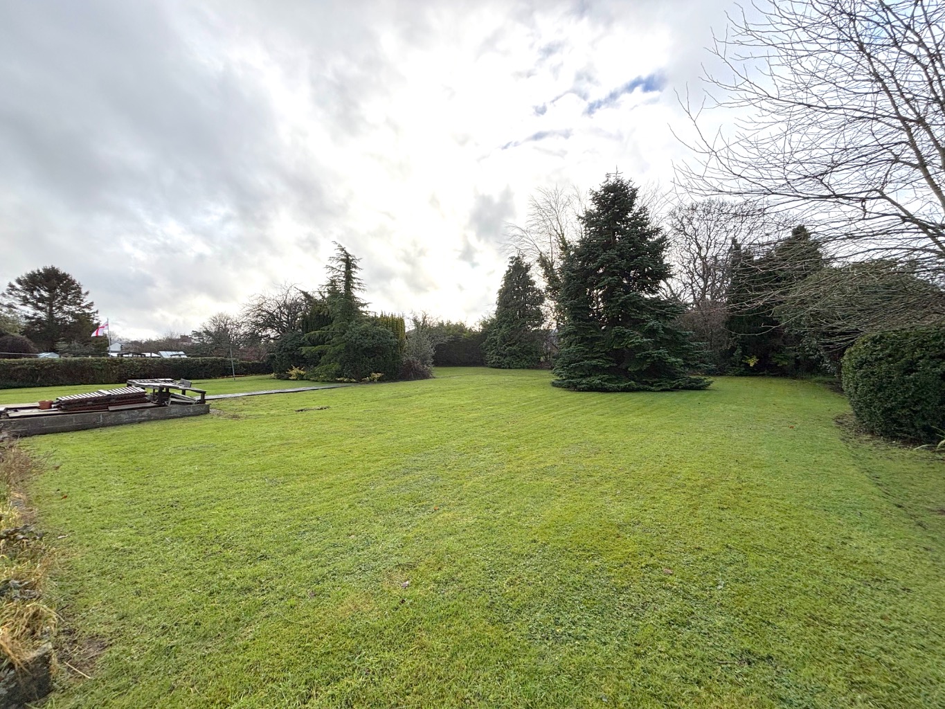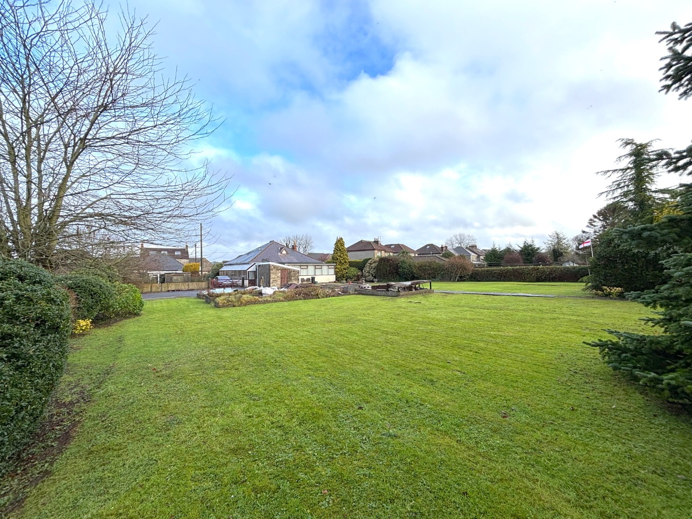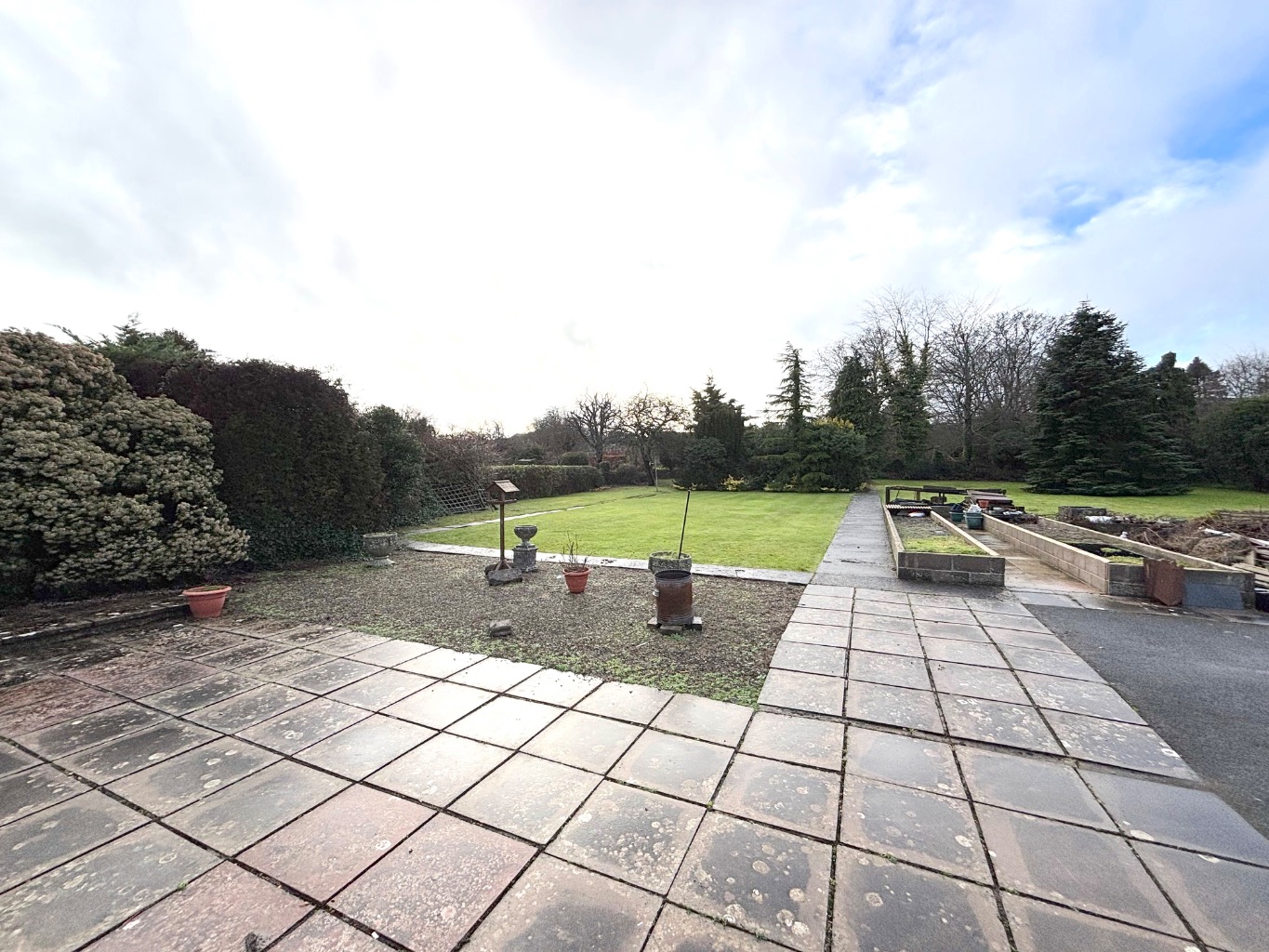 Externally, the property occupies an impressive plot. To the front, there is a large garden and driveway with potential to widen for additional access if required. The driveway continues to the rear of the property, providing a turning area and access to a rear patio. Beyond this lies a substantial lawned garden, offering significant space for entertaining, extending, or possible further development (subject to planning). The garden is well established with mature trees, shrubs, and planted borders, creating a private and attractive outdoor setting.
