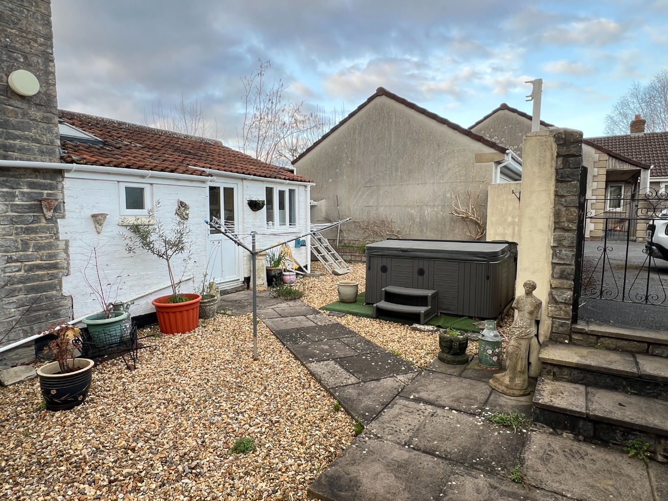 To the rear of the property, the garden has been designed for low maintenance with a built-up flower bed and patio area providing an attractive outdoor space. Further to the rear is a gravelled area featuring a characterful original well, a hot tub and additional space for outdoor seating and entertaining. The garden is enclosed by surrounding walls providing a good degree of privacy. The property also benefits from a garage with direct access from the garden and two off-road parking spaces to the front.
