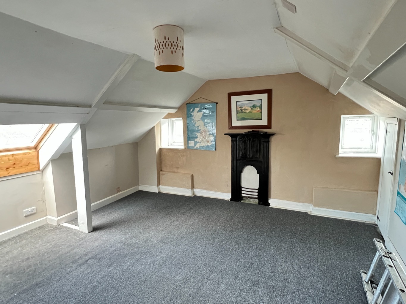 A superb principal bedroom occupying the second floor, offering a generous footprint with built-in storage cupboard and a door giving access through to the loft space beyond.