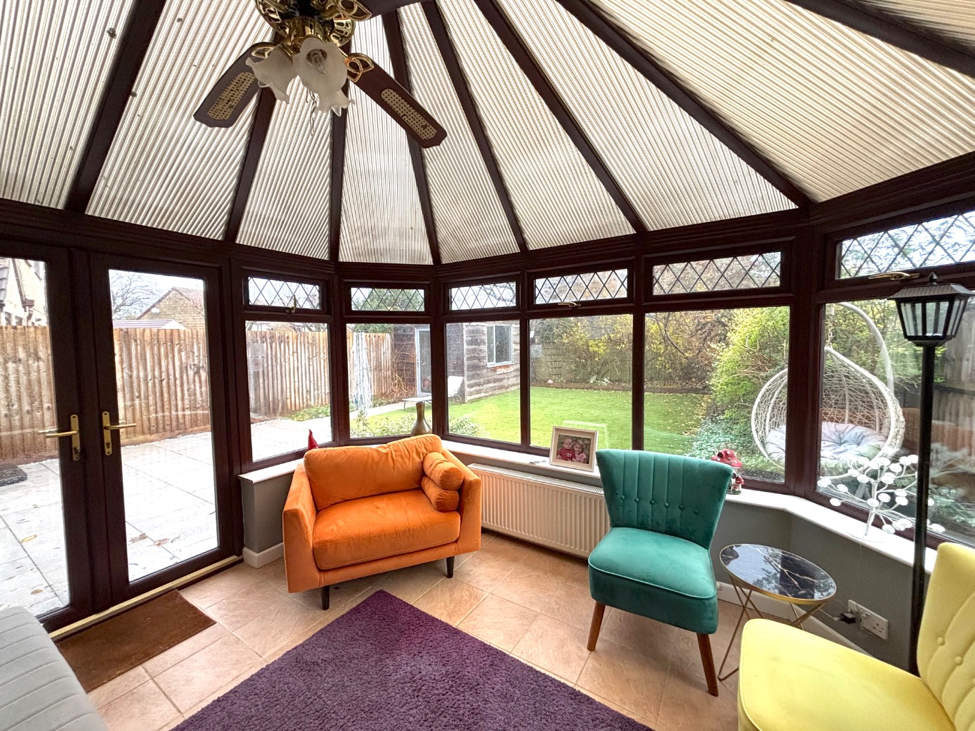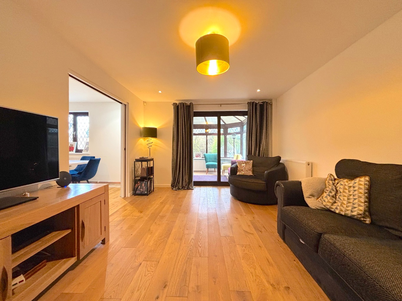 A spacious entrance hallway provides a warm welcome and includes access to a handy cloakroom. The generous lounge features an attractive layout with double doors opening into the dining room, allowing for a sociable flow between the main living spaces. From here, a further door leads into the conservatory, a bright additional reception area that overlooks the garden.