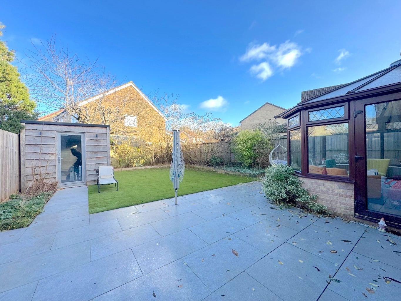 Outside, the property enjoys a private driveway with space for two cars side by side, leading to an integral garage. There is further potential to extend the driveway onto the remaining front garden if desired. Gated access opens into a generous, level rear garden that is fully enclosed and enjoys a private, sunny aspect—perfect for outdoor dining, children’s play, or simply relaxing.