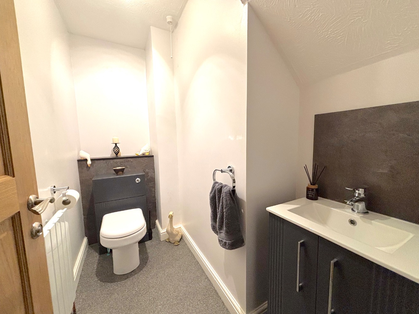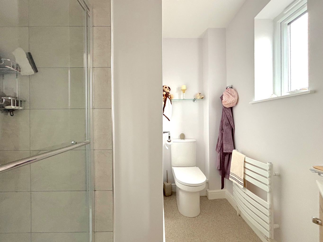 On the first floor, a spacious landing leads to four well-proportioned bedrooms. Bedrooms one and two are comfortable doubles, while bedrooms three and four are generous singles, all benefiting from built-in wardrobe storage. The principal bedroom enjoys a newly fitted en-suite shower room, and a contemporary family shower room serves the remaining bedrooms.
