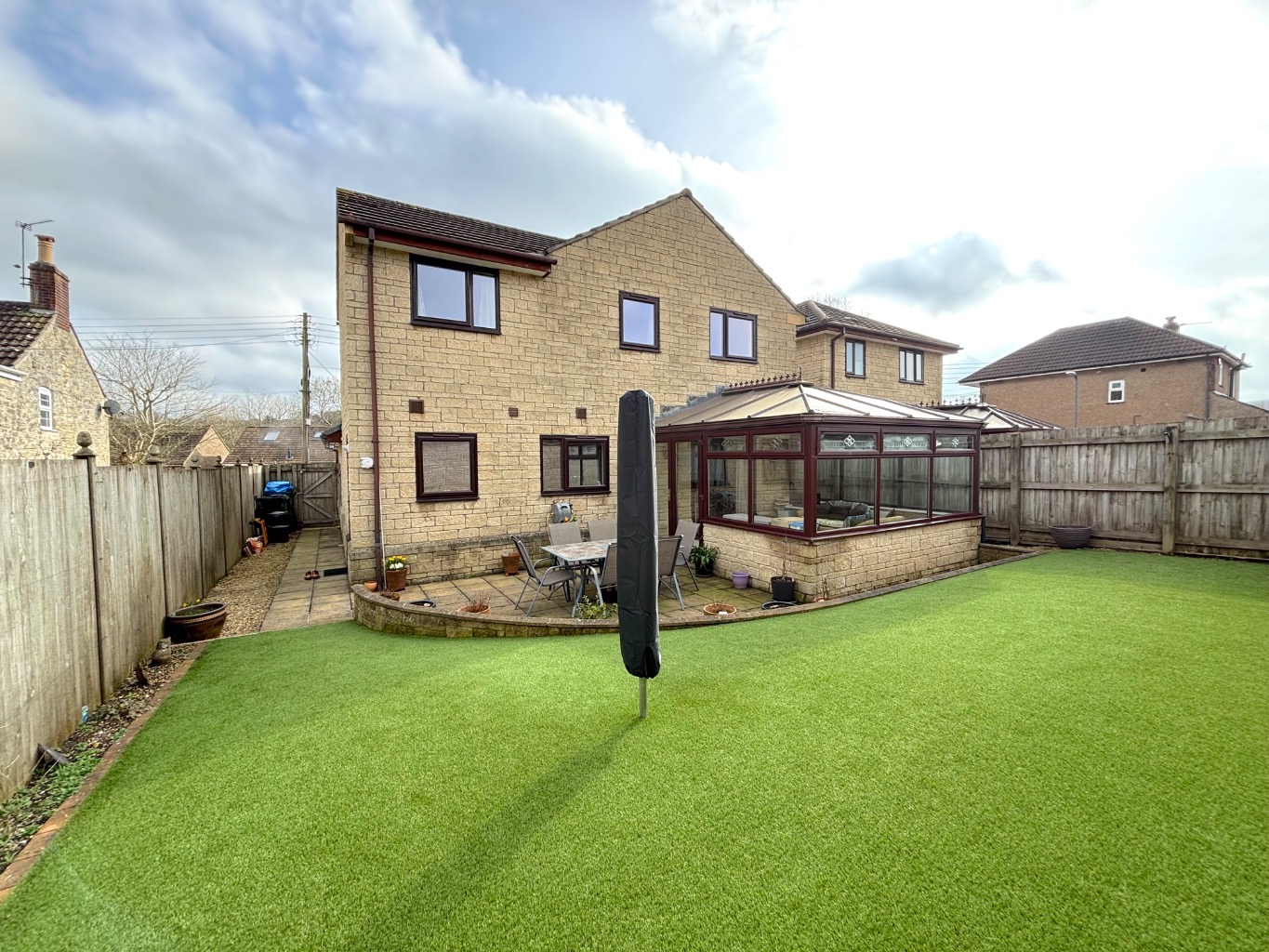 Externally, the property offers driveway parking for multiple vehicles to the front, alongside a single garage with power, lighting, and an electric door. Side access leads to a landscaped, low-maintenance rear garden featuring a patio area directly off the conservatory and smartly finished artificial lawn.