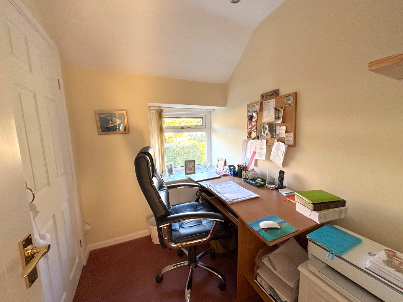 Externally, the property offers extensive parking and turning space, triple garaging, and well-maintained gardens to the front, side, and rear, each enjoying a distinct aspect. The gardens feature established flower beds, mature shrubs, and thoughtfully positioned seating areas. The garaging comprises a double garage and a larger-than-average single garage with access to a utility area, all benefiting from power, lighting, and water supply. In our opinion, this space also presents excellent potential for conversion to annexe accommodation or office space, subject to the necessary planning consents.