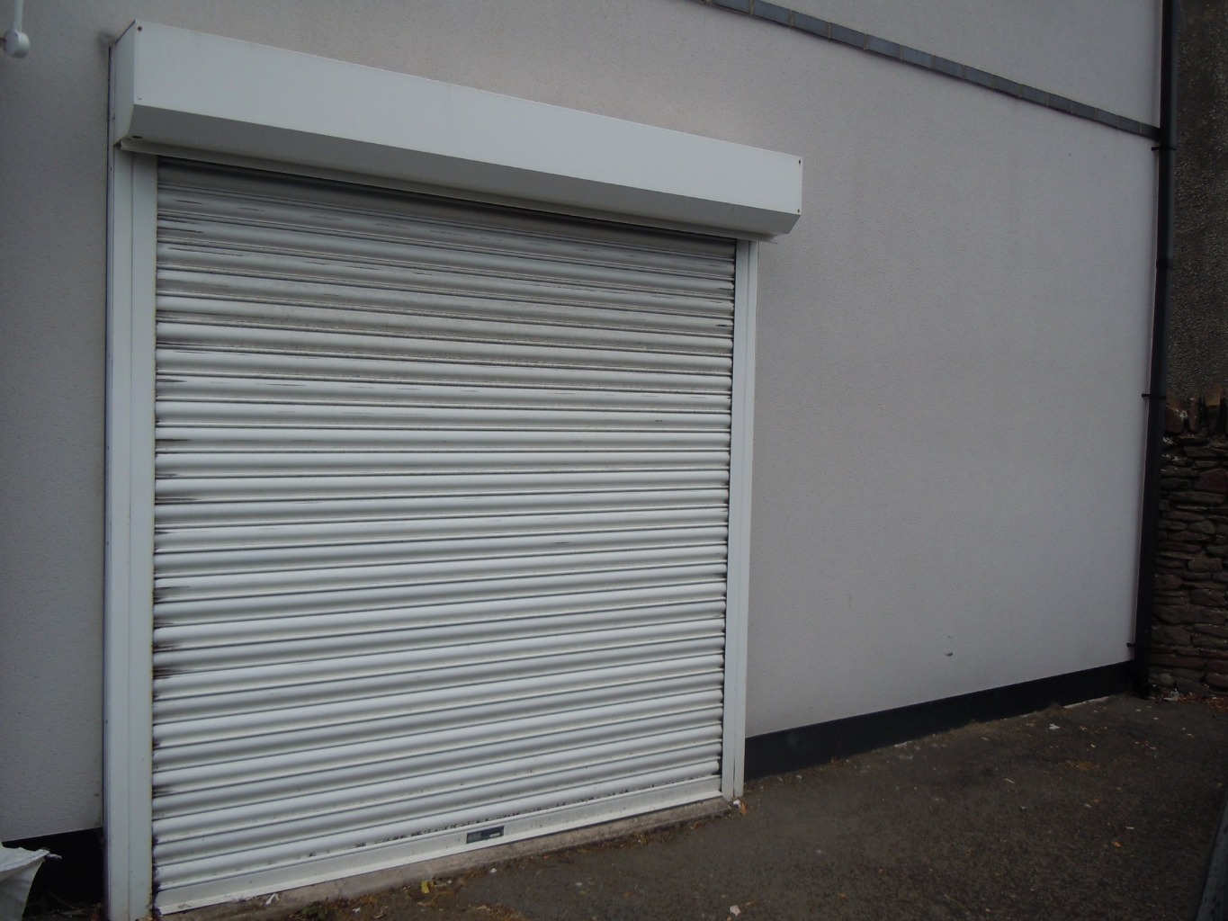 A secure storage unit with an electric roller shutter door, ideal for storage of machinery