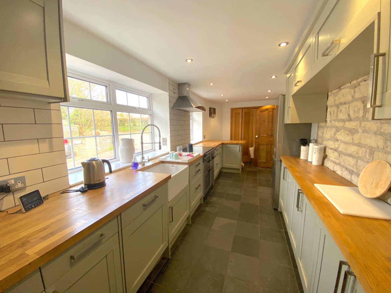 The kitchen is well-equipped and offers ample storage and workspace, catering to both everyday cooking and more elaborate meal preparation.